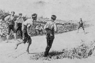 Juego que los hombres hacían en el camino de la Virgen y consistía en tirar unas bolas de hierro lo mas lejos que se podía, hoy en día no se juega, pero si se hace a la petanca.