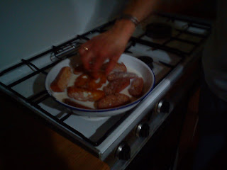 la masa en porciones, y darle con las manos una forma plana y alargada.