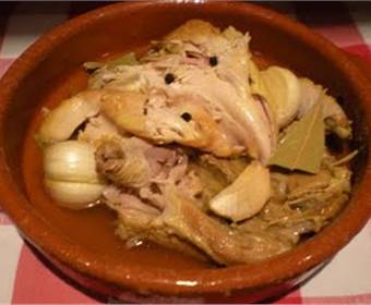 Pela 10 dientes de ajos, májalos en un mortero y añádelos a la cazuela con el aceite junto con el clavo, los granos de pimienta, el pimentón, el vinagre y el agua, mezclandolo